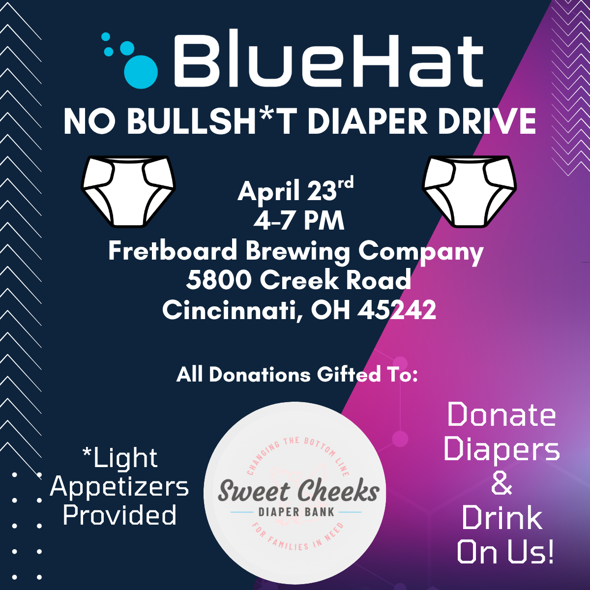 Support an amazing cause with BlueHat's Diaper Drive on April 23rd from 4-7pm at Fretboard Brewing Company! Bring diapers to donate to Sweet Cheeks Diaper Bank and drinks will be on BlueHat!